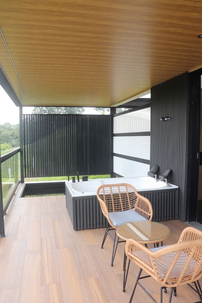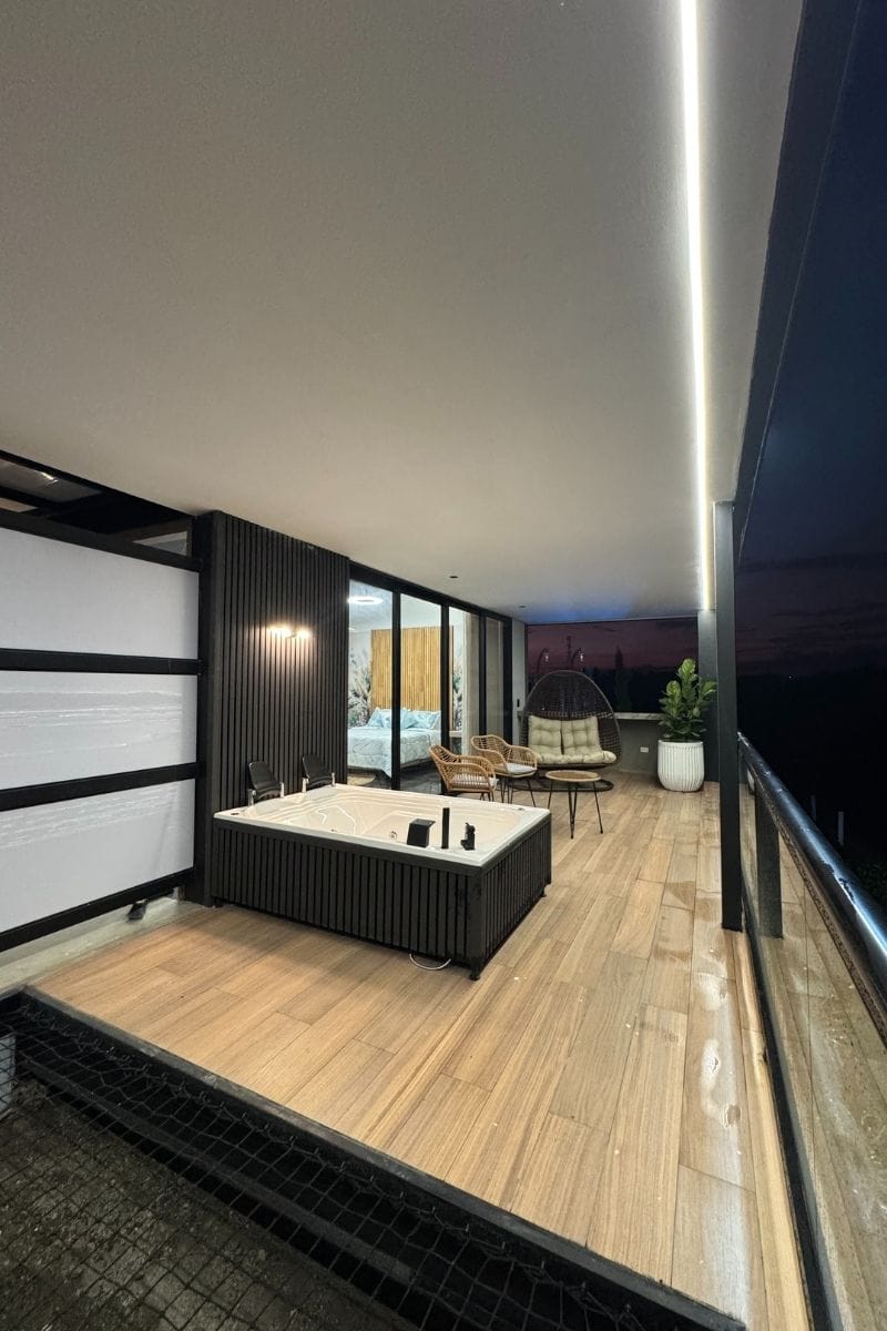Relájate en tu jacuzzi privado con el paisaje natural de Armenia, Quindío como escenario.